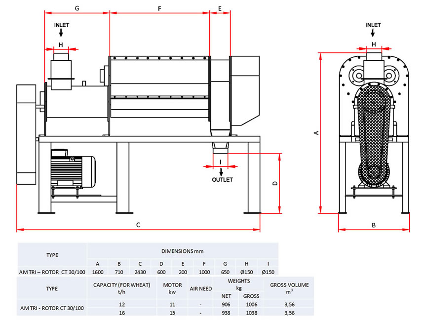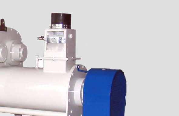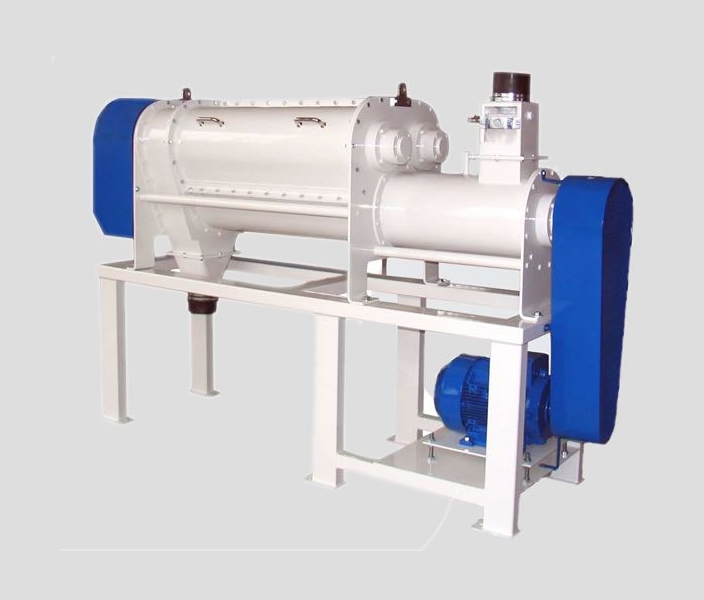 The machine is designed for dampening the grain at dry cleaning units of the flour and semolina mills.The grain is fed throug the inlet pipe halves and is conveyed into the dampener chamber by the paddle-element beaters on the drive shaft. While is conveying, the product is mixed with water in the dampener chamber.