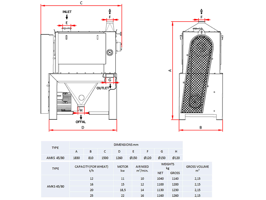 | The grain is discharged at the outlet or supplied directly to the air recycling aspirator, the husks drop in to the collecting hopper. The scouring level can be adjusted using the back and up system.It is used at first and second cleaning section in the flour and semolina mills. |